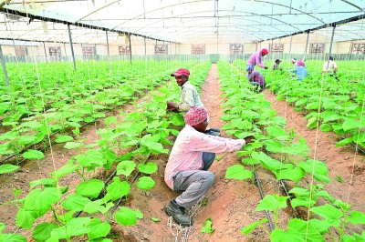 10月31日,萨里查看大棚中种植的水果。新华社发