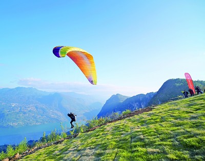 10月30日,在湖北省恩施土家族苗族自治州巴东县水布垭镇三里城,2025巴东滑翔伞“廪君杯”邀请赛顺利完赛。据悉,本次比赛项目为滑翔伞定点飞行比赛,起飞场海拔1100多米,降落场海拔610米,落差在490米。赛事采用选手落地触点与靶盘中心的距离计分。经过激烈角逐,来自四川资阳的吴勇获得2025巴东滑翔伞“廪君杯”邀请赛冠军。焦国斌摄/光明图片