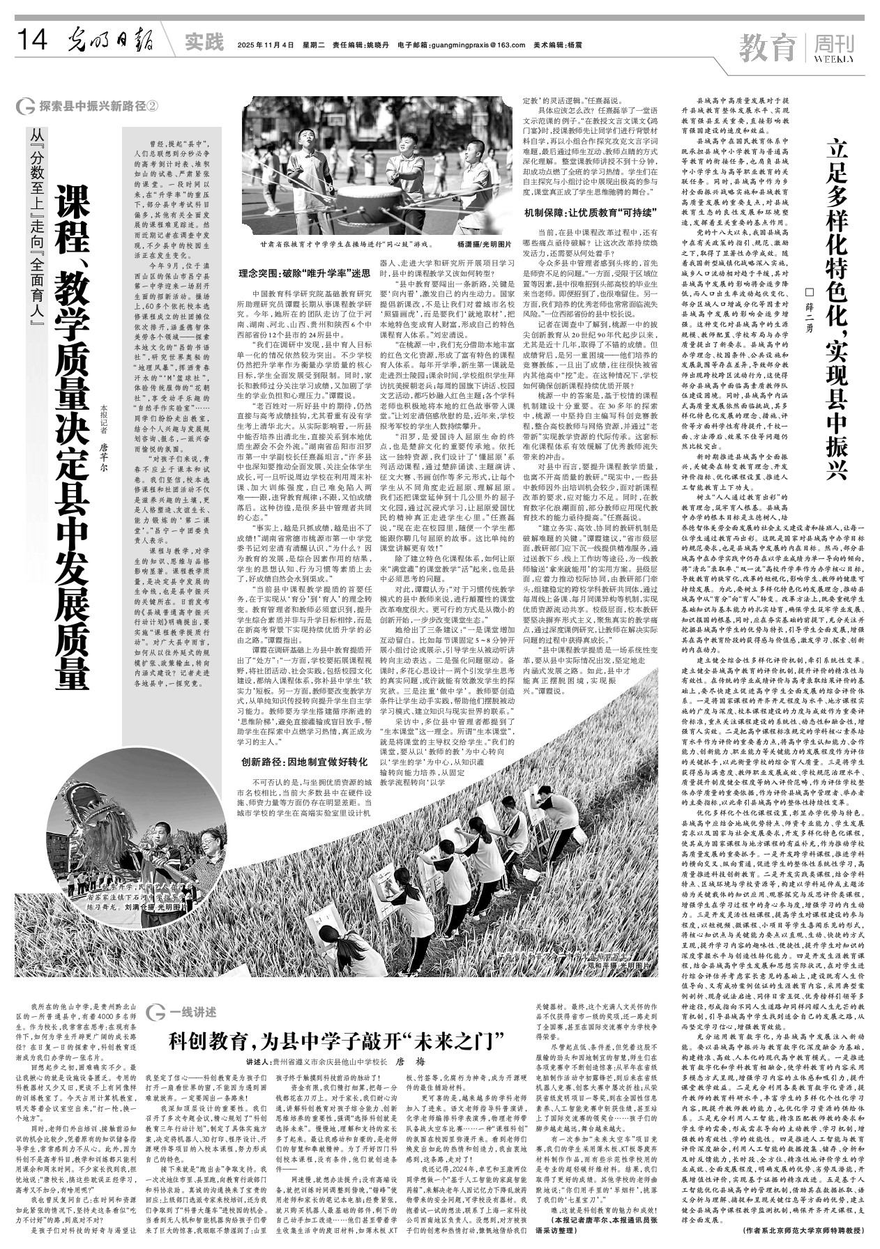 县域高中高质量发展对于提升县域教育整体发展水平、实现教育强县至关重要,直接影响教育强国建设的速度和效益。