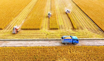 11月3日,江苏省南通市通州区石港镇四港村农民驾驶收割机抢收水稻。新华社发