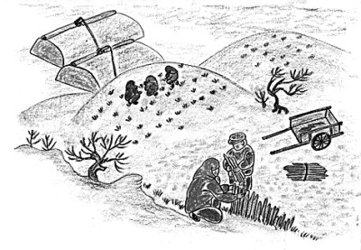 从几年前《田鼠大婶的日记》引发关注,到这两本书的出版,裴爱民实现从乡村故事记录者、观察者向乡村“叙事人”的转型。她一边抿着嘴笑一边用蜡笔画下国林大爹和高大妈、光荣两口子充满情趣的生活细节,那些沉默做事的男人和快言快语、风风火火的女人,都被刻画得淋漓尽致。那些悠长的回忆,充满了童真、梦幻和忧伤的呢喃细语,是讲给树讲给庄稼讲给羊的,也是讲给风的。她总是三言两语就把日常生活的细节点燃,把人们带回美好的回忆,让那些被爱意缓释的艰辛与苦难,一下子变得柔软、灵动起来。她笔下和谐、冲淡、优美的场景,总给人以抚慰和疗愈。现代人正在丧失对自然美的感受力和表达力,裴爱民的这种能力与生俱来,因为热爱生活着的这一方土地,所以她总是在日复一日的劳作中发现生活之美。