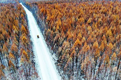 11月6日,G331国道黑龙江嘉荫至萝北段迎来降雪天气,驾车行驶其间仿佛进入了冰雪秘境。丹东—阿勒泰公路(G331国道)全长超9000公里,是我国重要的边境交通动脉。图为当日,车辆在G331国道嘉荫段的林海雪原间行驶。新华社记者 谢剑飞摄