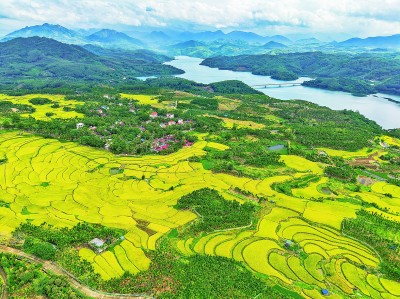 立冬时节,海南省三亚市万亩晚稻成熟,开镰在即。图为11月7日,三亚市育才生态区雅亮村千亩水稻遍地金黄。叶龙斌摄/光明图片