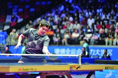 11月12日,北京队选手王楚钦4:3战胜香港队黄镇廷,晋级乒乓球男子单打8强。本报记者 朱晓帆摄/光明图片