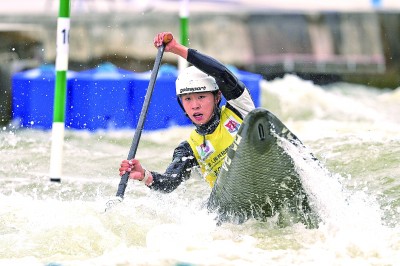 11月12日,十五运会皮划艇激流回旋项目迎来第一个比赛日。图为选手在比赛中。本报记者 陈城摄/光明图片
