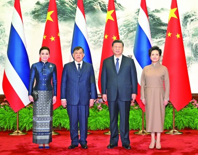 会见前,习近平和夫人彭丽媛在人民大会堂东门外广场为哇集拉隆功和王后素提达举行欢迎仪式。