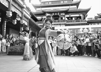 11月14日,“青春造物场——2025豫园城市非遗季”在上海豫园商城开幕。图为来自浙江的非遗滚灯展演在豫园商城中心广场举行。新华社记者 刘颖摄
