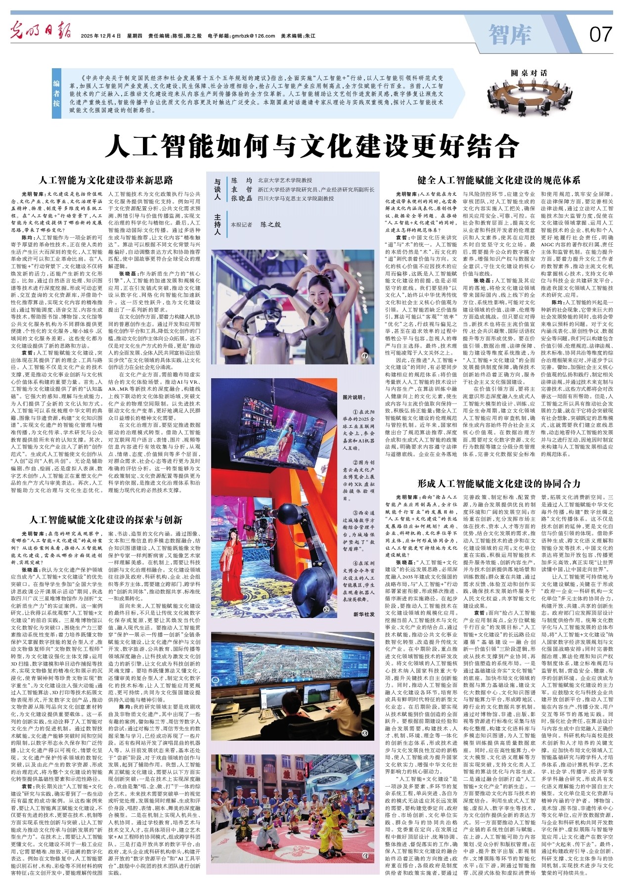 光明智库:文化建设是包括价值观念、文化产业、文化事业、文化治理等涵盖精神、物质、制度等多维度的系统工程。在“人工智能+”行动背景下,人工智能为文化建设提供了哪些新的发展思路,带来了哪些变化?