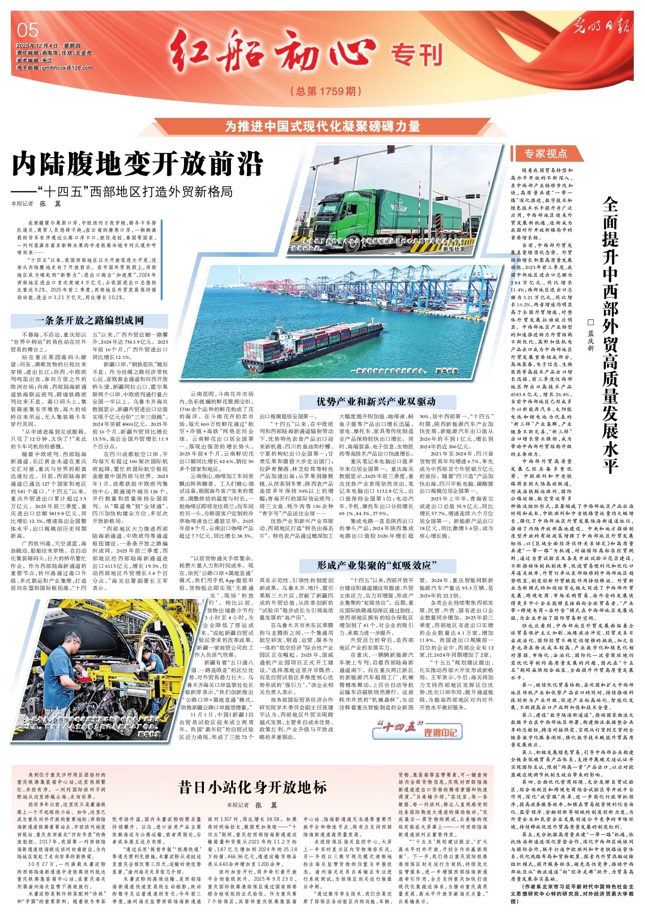 然而多年以前,这里还只是襄渝铁路上一个不起眼的小站。如今,这里已成为重庆对外开放的重要地标:西部陆海新通道铁路重要站点、中欧班列始发回程站、重庆东西南北“四向齐发”的物流枢纽。2017年,我国第一列西部陆海新通道铁海联运班列向南驶出,为内陆地区架起了走向世界的新桥梁。