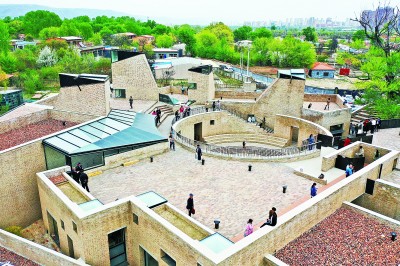 燕山起起伏伏,慕田峪长城在山间盘卧,一座乡村美术馆就在这样的环境里扎下了根。记者日前来到位于北京市怀柔区渤海镇北沟村的瓦美术馆,只见黄色琉璃瓦贴砌的美术馆外墙在阳光映射下,披上了一层金光,与周边居民的红砖小楼遥相呼应,传递着现代艺术在大山深处的另一面魅力。