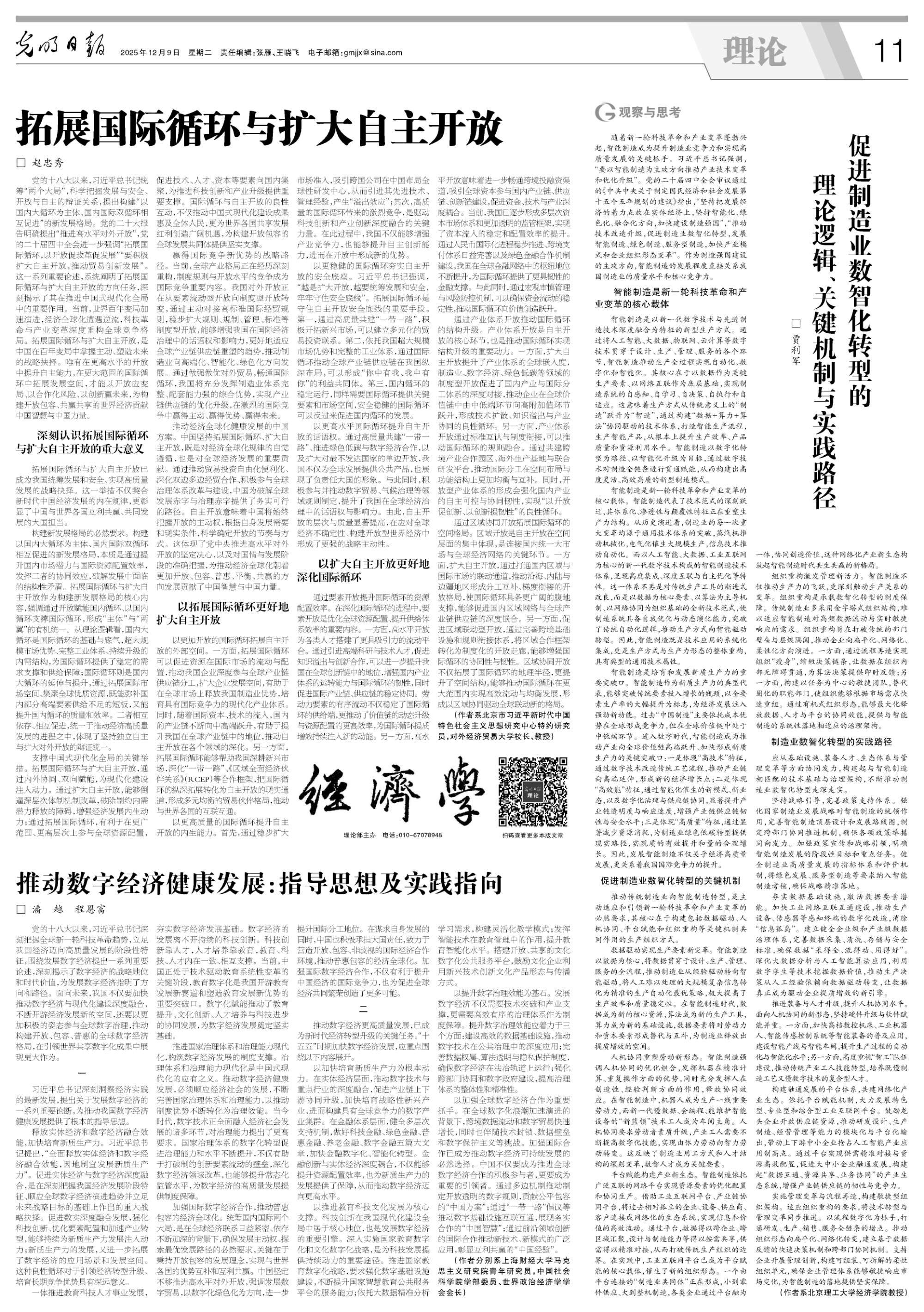 以加强全球数字经济合作为重要抓手。在全球数字化浪潮加速演进的背景下,跨境数据流动和数字贸易快速增长,同时也伴随技术封锁、数据壁垒和数字保护主义等挑战。加强国际合作已成为推动数字经济可持续发展的必然选择。中国不仅要成为推进全球数字经济合作的积极参与者,更要成为重要的引领者。通过多边机制推动制定开放透明的数字规则,贡献公平包容的“中国方案”;通过“一带一路”倡议等推动数字基础设施互联互通,展现务实合作的“中国智慧”;通过前沿领域创新的国际合作推动新技术、新模式的广泛应用,彰显互利共赢的“中国经验”。