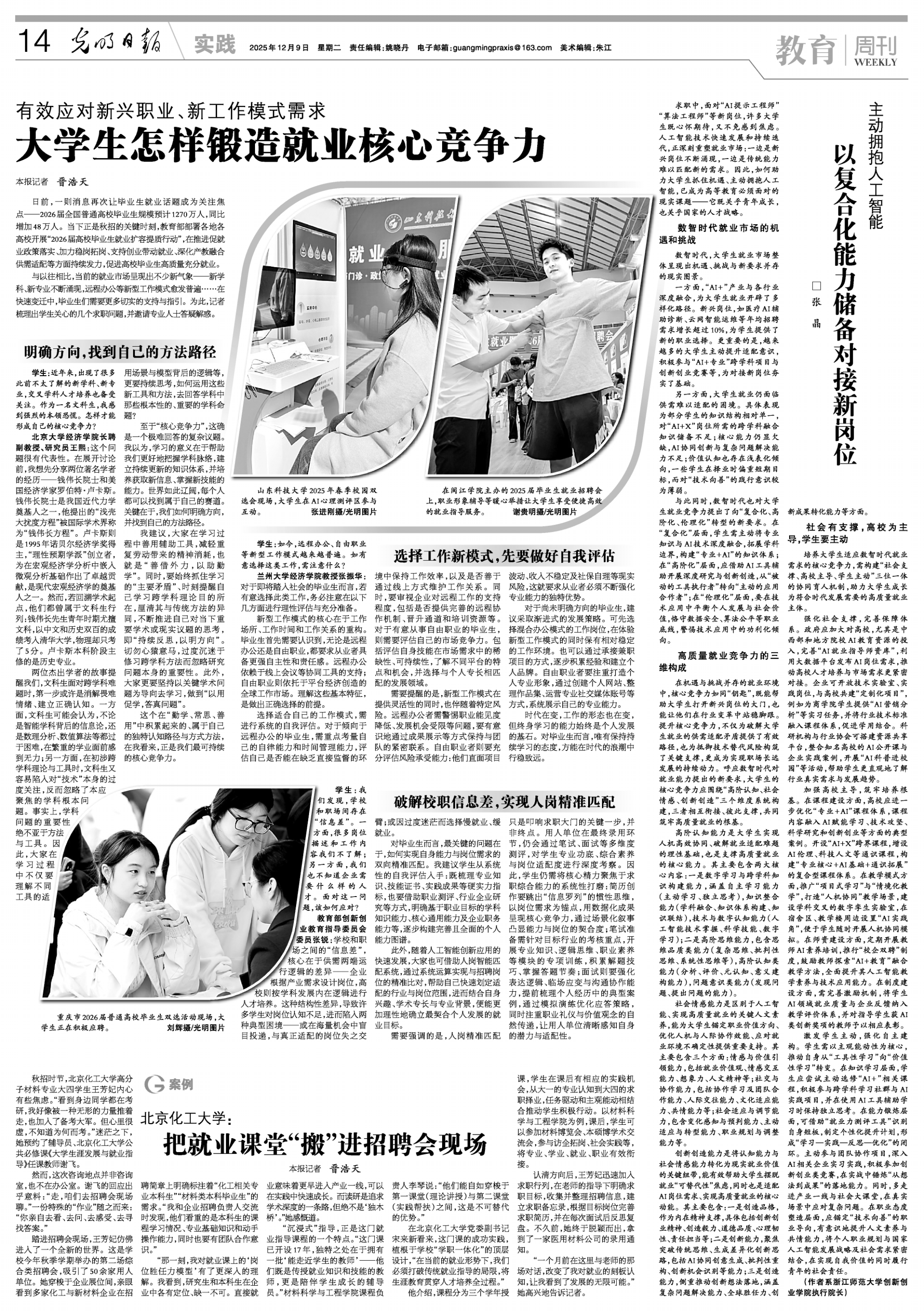 “那一刻,我对就业课上的‘岗位胜任力模型’有了更深入的理解。我看到,研究生和本科生在企业中各有定位、缺一不可。直接就业意味着更早进入产业一线,可以在实践中快速成长。而读研是追求学术深度的一条路,但绝不是‘独木桥’。”她感慨道。