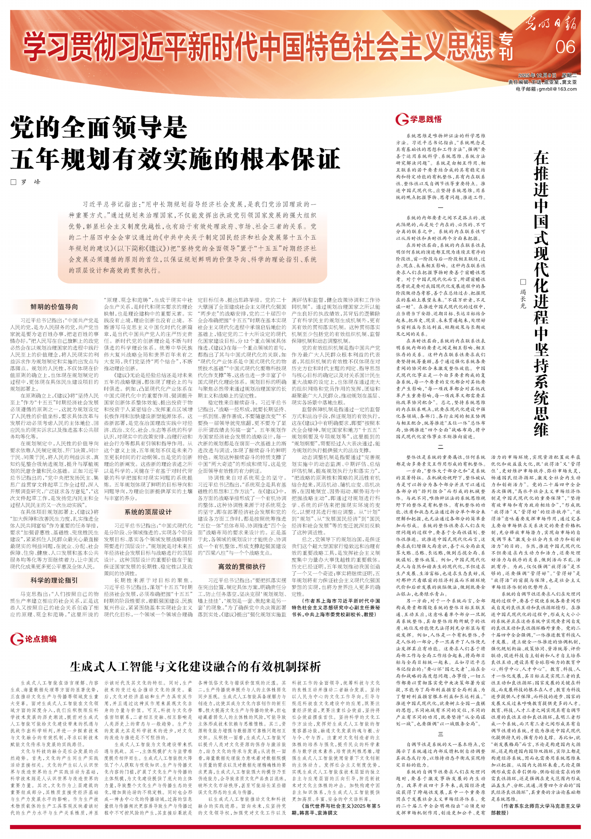 系统思维是唯物辩证法的科学思维方法。习近平总书记指出,“系统观念是具有基础性的思想和工作方法”,强调“要善于运用系统科学、系统思维、系统方法研究解决问题”。系统是由相互作用、相互联系的若干要素结合成的具有稳定结构和特定功能的有机整体,具有内在联系性、整体性以及自调节性等重要特点。推进中国式现代化,应坚持系统思维,用系统的观点把握事物、思考问题、推进工作。