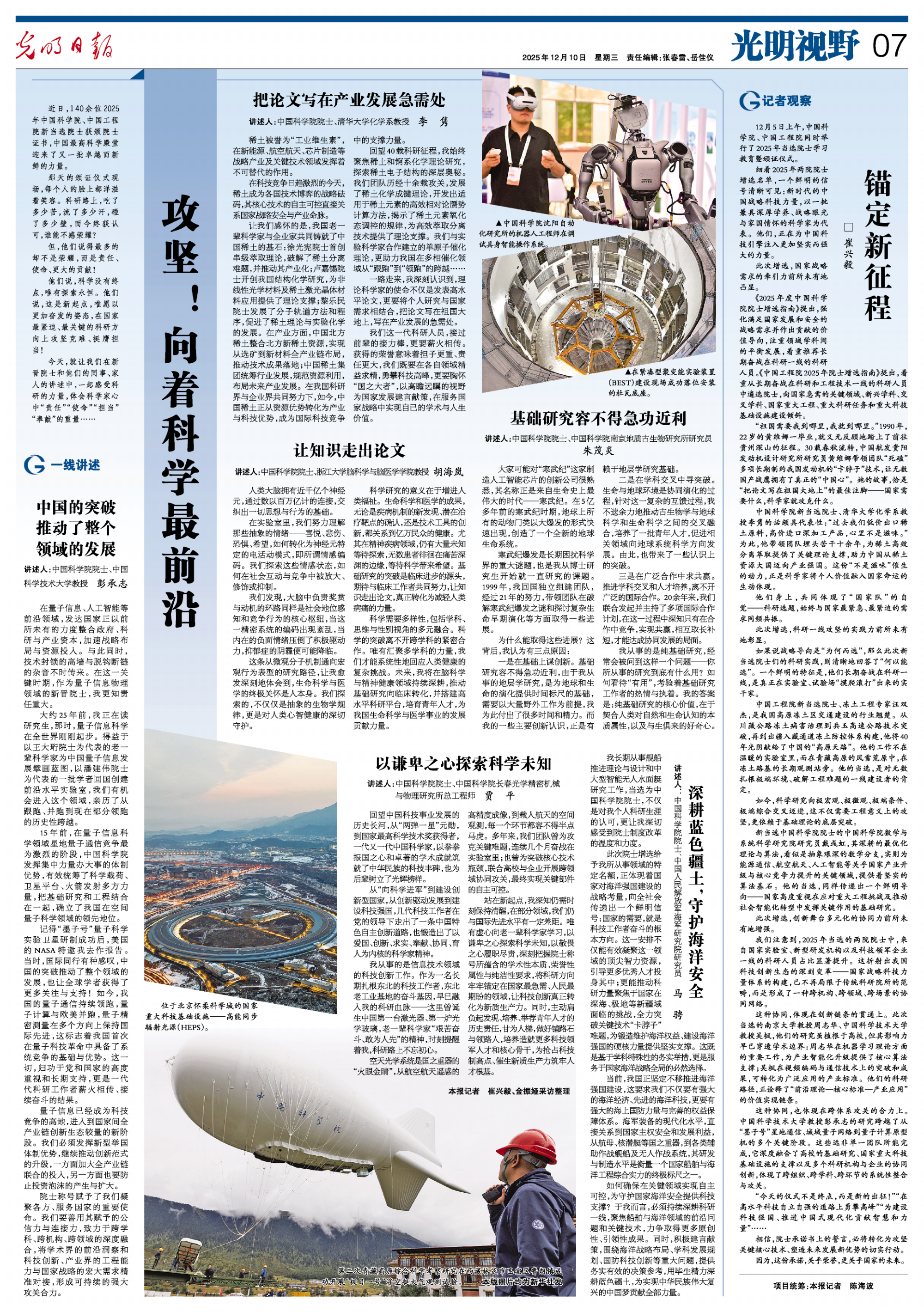 站在新起点,我深知仍需时刻保持清醒,在部分领域,我们仍与国际先进水平有一定差距。唯有虚心向老一辈科学家学习,以谦卑之心探索科学未知,以敬畏之心履职尽责,深刻把握院士称号所蕴含的学术性本质、荣誉性属性与纯洁性要求,将科研方向牢牢锚定在国家最急需、人民最期盼的领域,让科技创新真正转化为新质生产力。同时,主动肩负起发现、培养、举荐青年人才的历史责任,甘为人梯,做好铺路石与领路人,培养造就更多科技领军人才和核心骨干,为抢占科技制高点、催生新质生产力筑牢人才根基。
