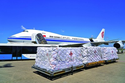 12月8日,中国援助斯里兰卡紧急人道主义抗洪救灾物资运抵科伦坡。图为物资接收仪式现场。新华社发