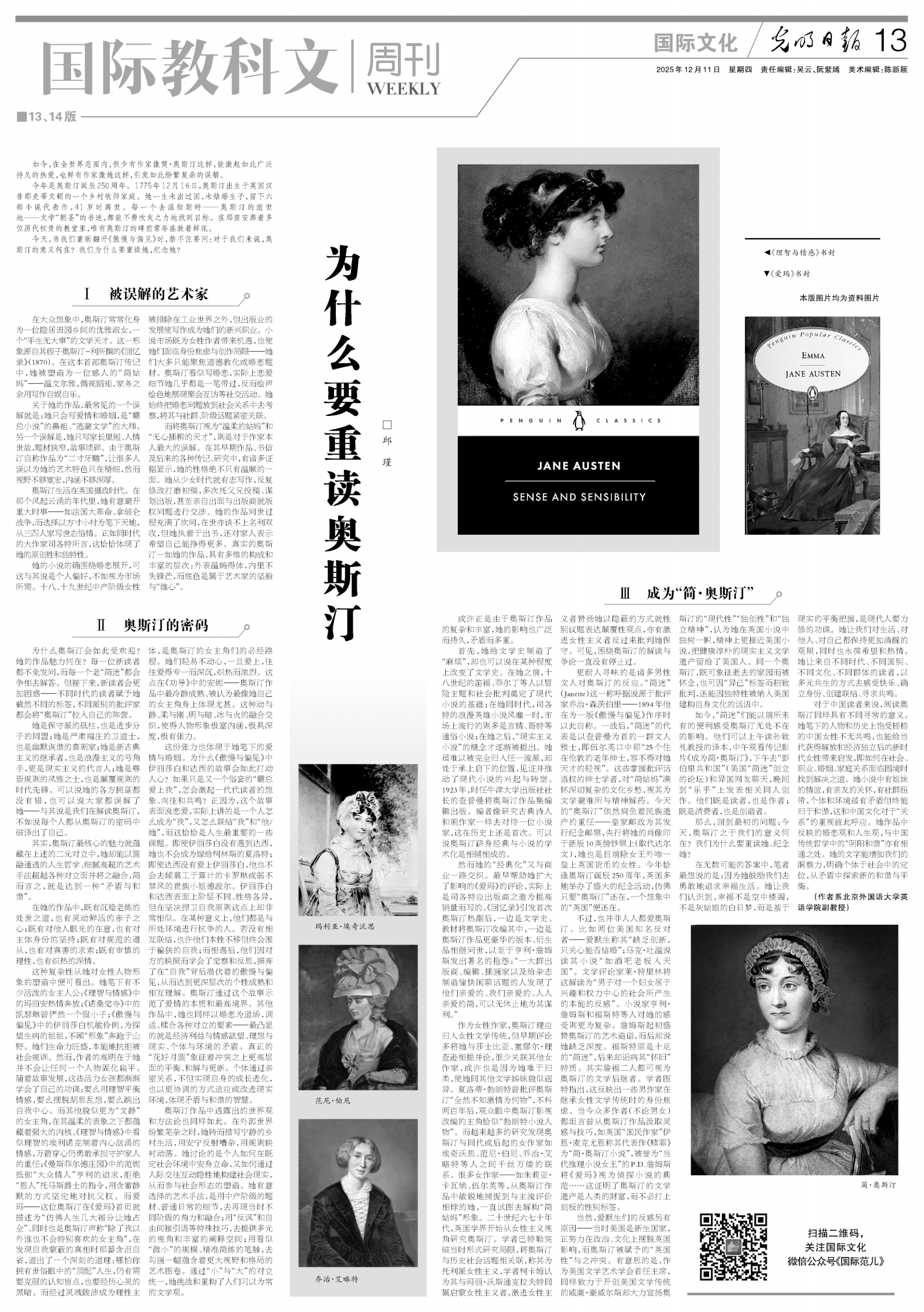 今天,当我们重新翻开《傲慢与偏见》时,禁不住要问:对于我们来说,奥斯汀的意义何在?我们为什么要重读她,纪念她?