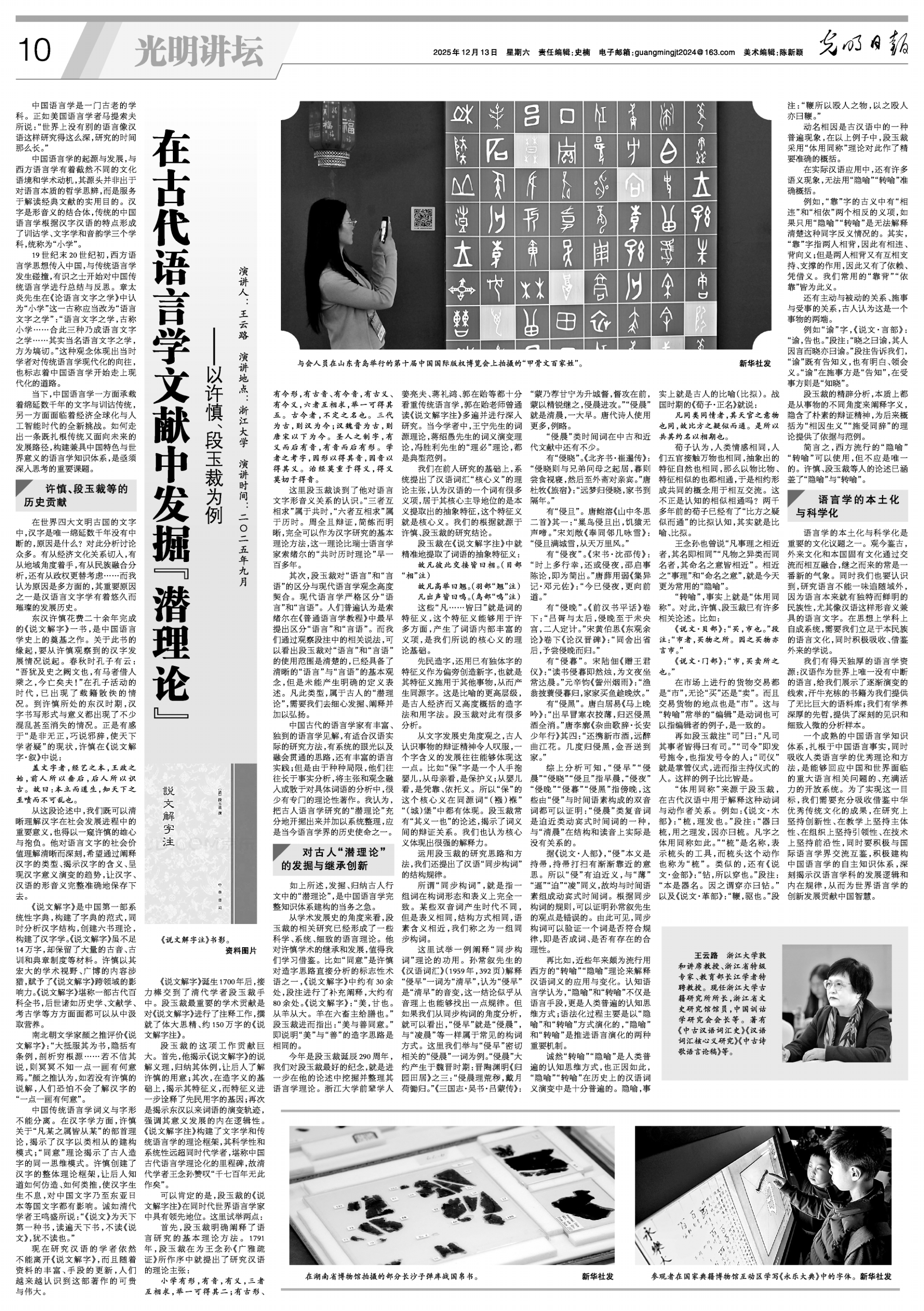 今年是段玉裁诞辰290周年,我们对段玉裁最好的纪念,就是进一步在他的论述中挖掘并整理其语言学理论。浙江大学前辈学人姜亮夫、蒋礼鸿、郭在贻等都十分看重传统语言学,郭在贻老师曾通读《说文解字注》多遍并进行深入研究。当今学者中,王宁先生的词源理论,蒋绍愚先生的词义演变理论,冯胜利先生的“理必”理论,都是典型范例。