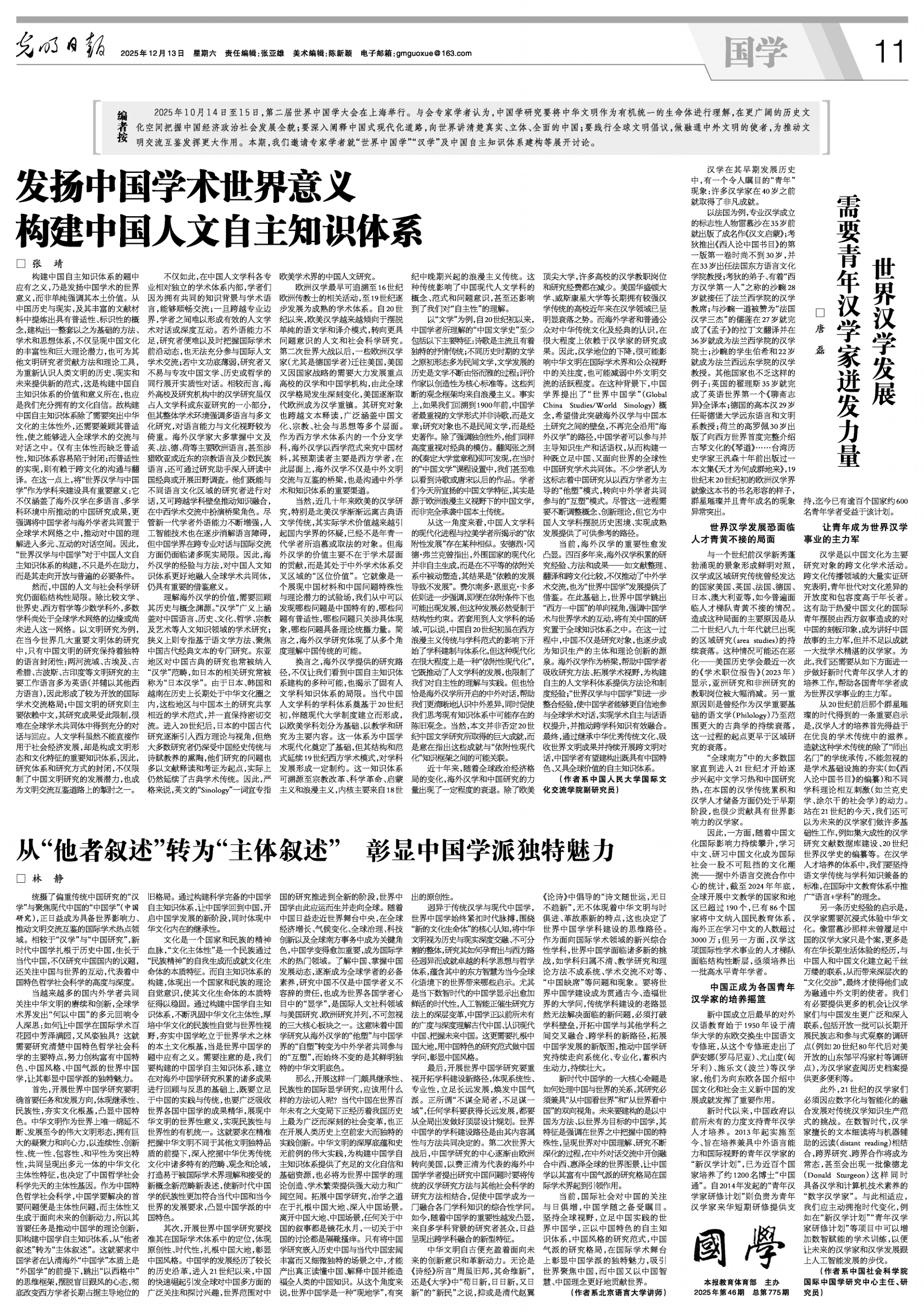 当前,国际社会对中国的关注与日俱增,中国学随之备受瞩目。坚持全球视野,立足中国实践的世界中国学,正以中国特色的自主知识体系,中国风格的研究范式,中国气派的研究格局,在国际学术舞台上彰显中国学派的独特魅力,吸引世界聚焦中国,而中国又以中国智慧、中国理念更好地贡献世界。