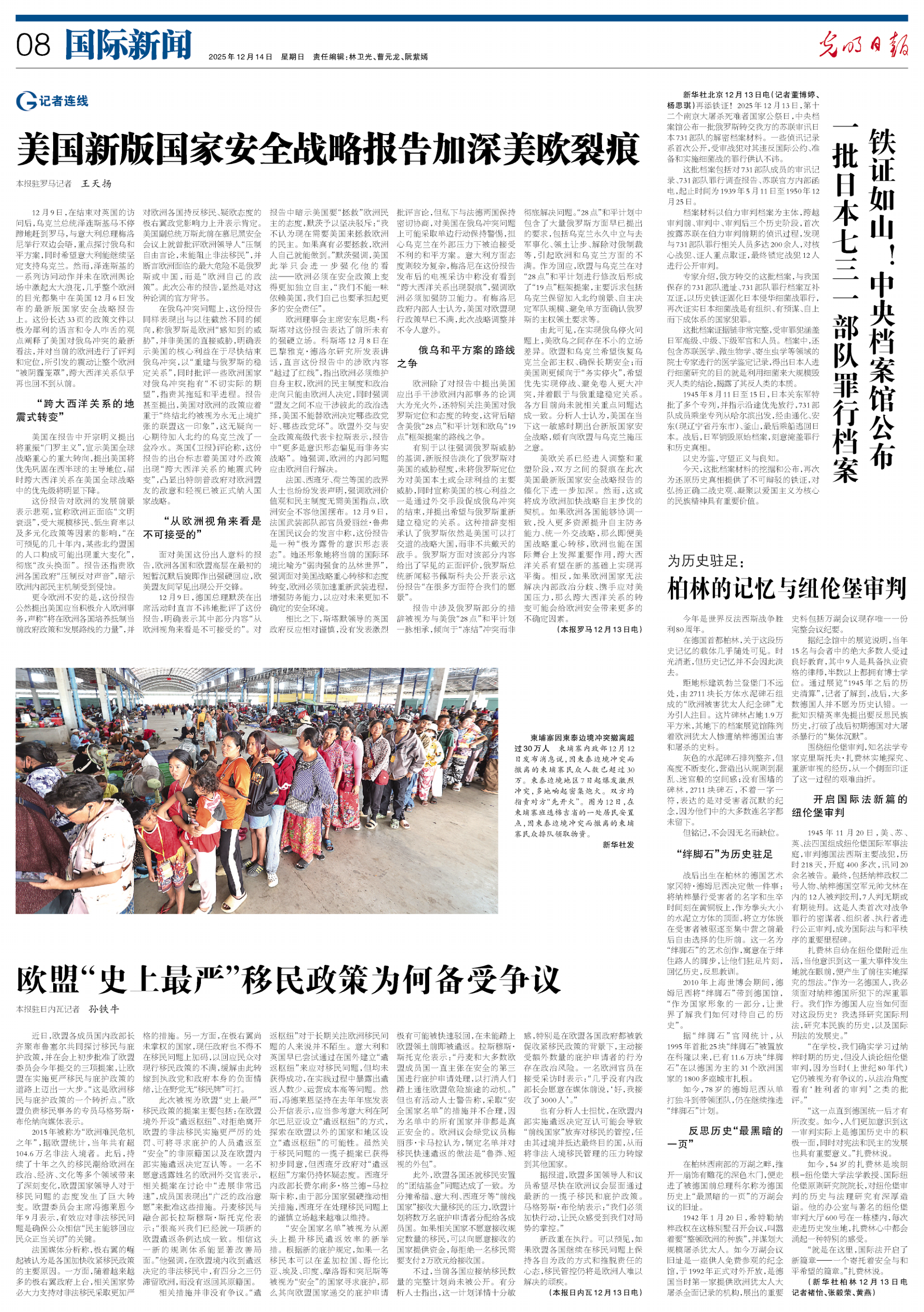 新华社北京12月13日电(记者董博婷、杨思琪)再添铁证!2025年12月13日,第十二个南京大屠杀死难者国家公祭日,中央档案馆公布一批俄罗斯转交我方的苏联审讯日本731部队的解密档案材料。一些侦讯记录系首次公开,受审战犯对其违反国际公约、准备和实施细菌战的罪行供认不讳。