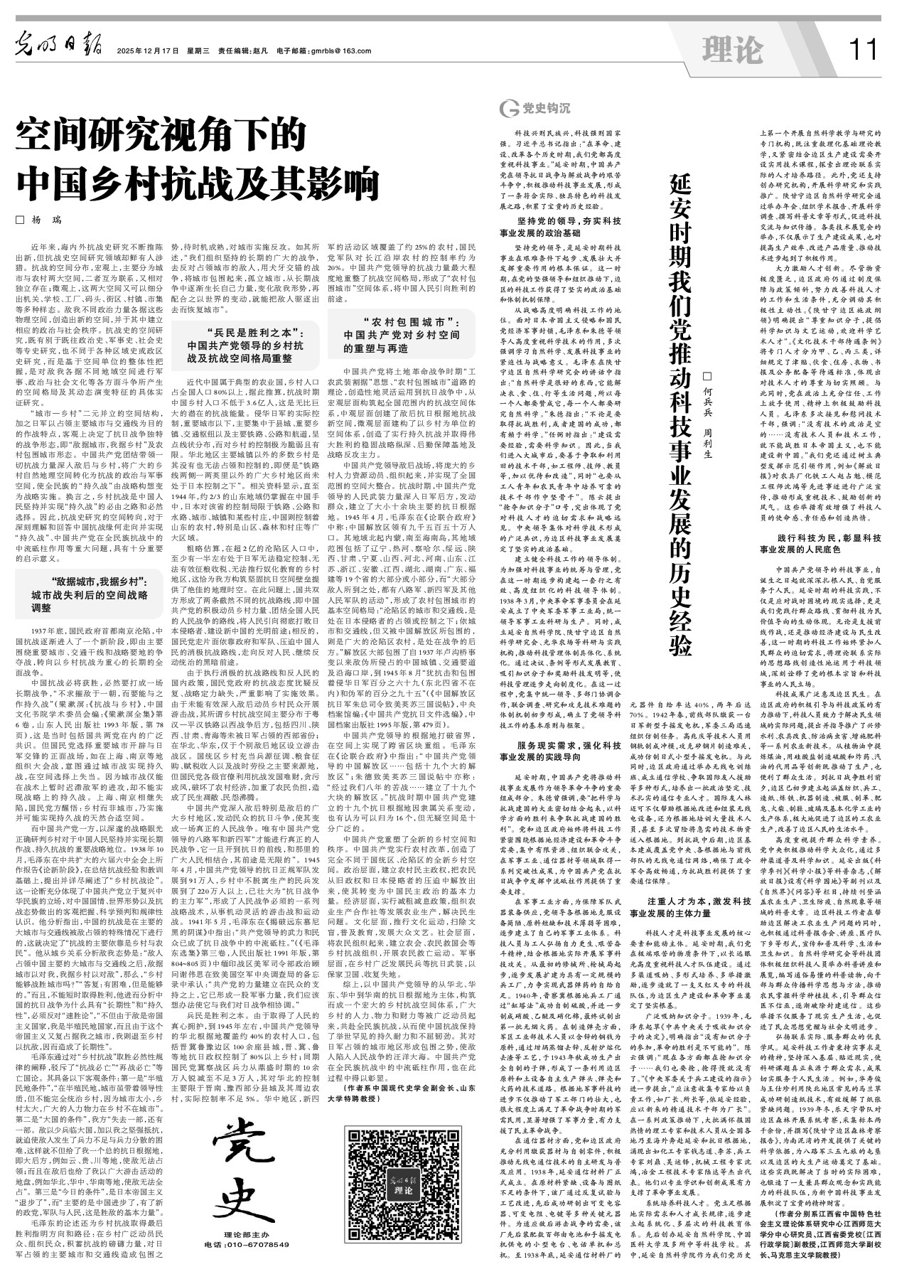 延安时期,中国共产党将推动科技事业发展作为领导革命斗争的重要组成部分。朱德曾强调,要“把科学与抗战建国的大业密切结合起来,以科学方面的胜利来争取抗战建国的胜利”。党和边区政府始终将科技工作紧密围绕根据地经济建设和革命斗争需要,集中有限资源、组织联合攻关,在军事工业、通信器材等领域取得一系列突破性成果,为中国共产党在抗日战争中发挥中流砥柱作用提供了重要支撑。