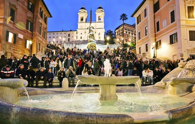 12月14日,人们在意大利首都罗马的西班牙广场游览。新华社发