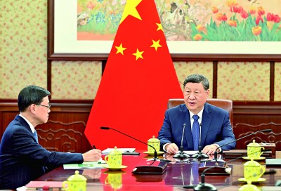习近平指出,中国共产党二十届四中全会对“十五五”时期国家经济社会发展作出战略擘画,强调要坚定不移贯彻“一国两制”、“港人治港”、高度自治方针,促进香港长期繁荣稳定。特别行政区政府要主动对接国家“十五五”规划,坚持和完善行政主导,扎实推动经济高质量发展,深度参与粤港澳大湾区建设,更好融入和服务国家发展大局。