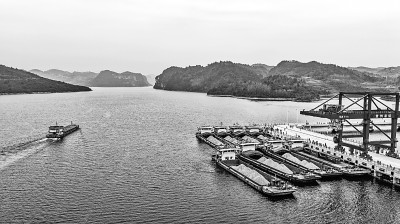 12月16日,随着汽笛长鸣,桥式起重机将装有沉淀硫酸钡的集装箱吊入货船准备起运,贵州省首个自动化港口——瓮安港云中港区正式开港。云中港区是贵州省首个专业化、智能化、现代化的港口,投运后对于当地构建立体交通运输体系具有重要意义。新华社记者 陶亮摄