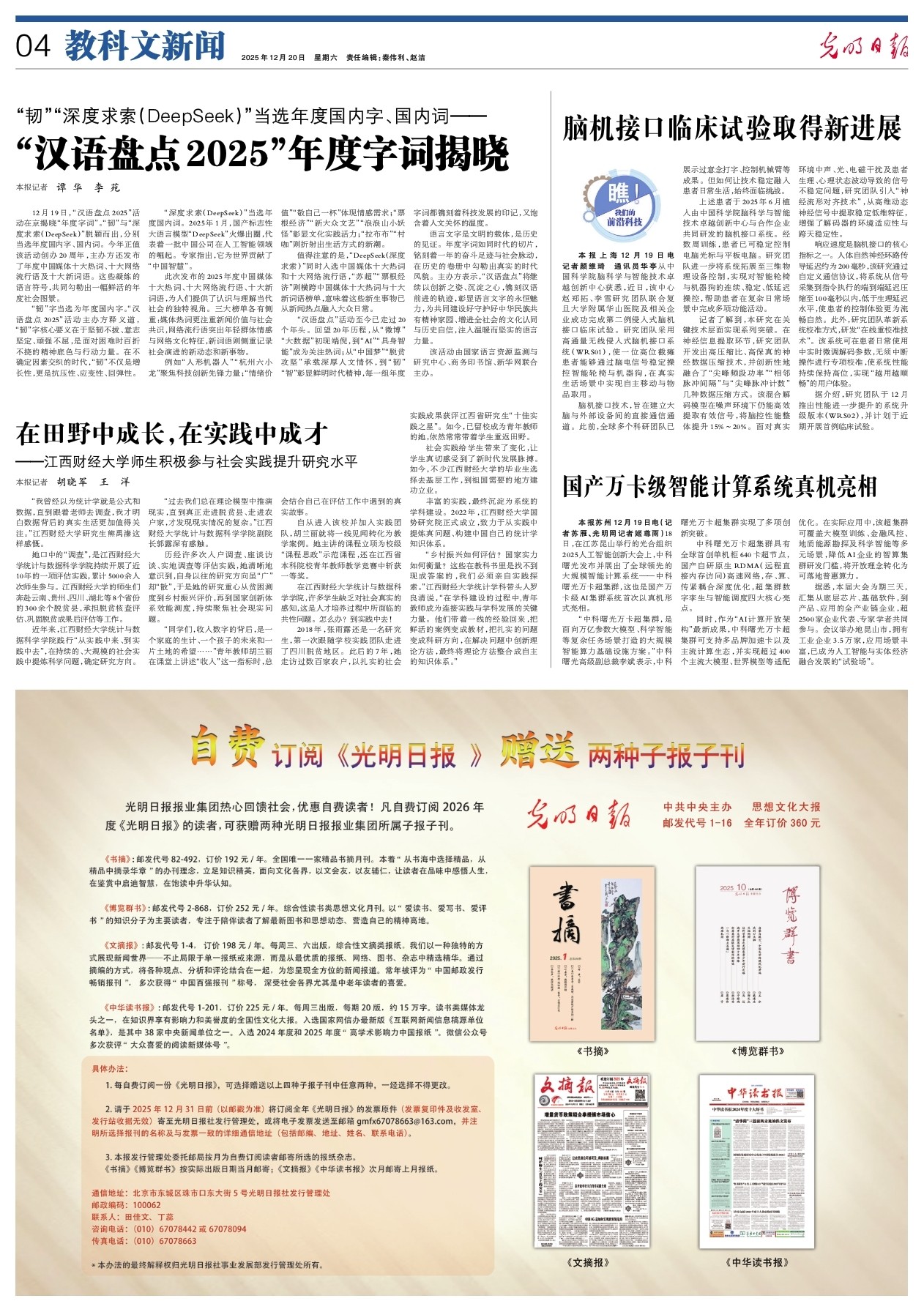 “汉语盘点”活动至今已走过20个年头。回望20年历程,从“微博”“大数据”初现端倪,到“AI”“具身智能”成为关注热词;从“中国梦”“脱贫攻坚”承载深厚人文情怀,到“韧”“智”彰显鲜明时代精神,每一组年度字词都镌刻着科技发展的印记,又饱含着人文关怀的温度。