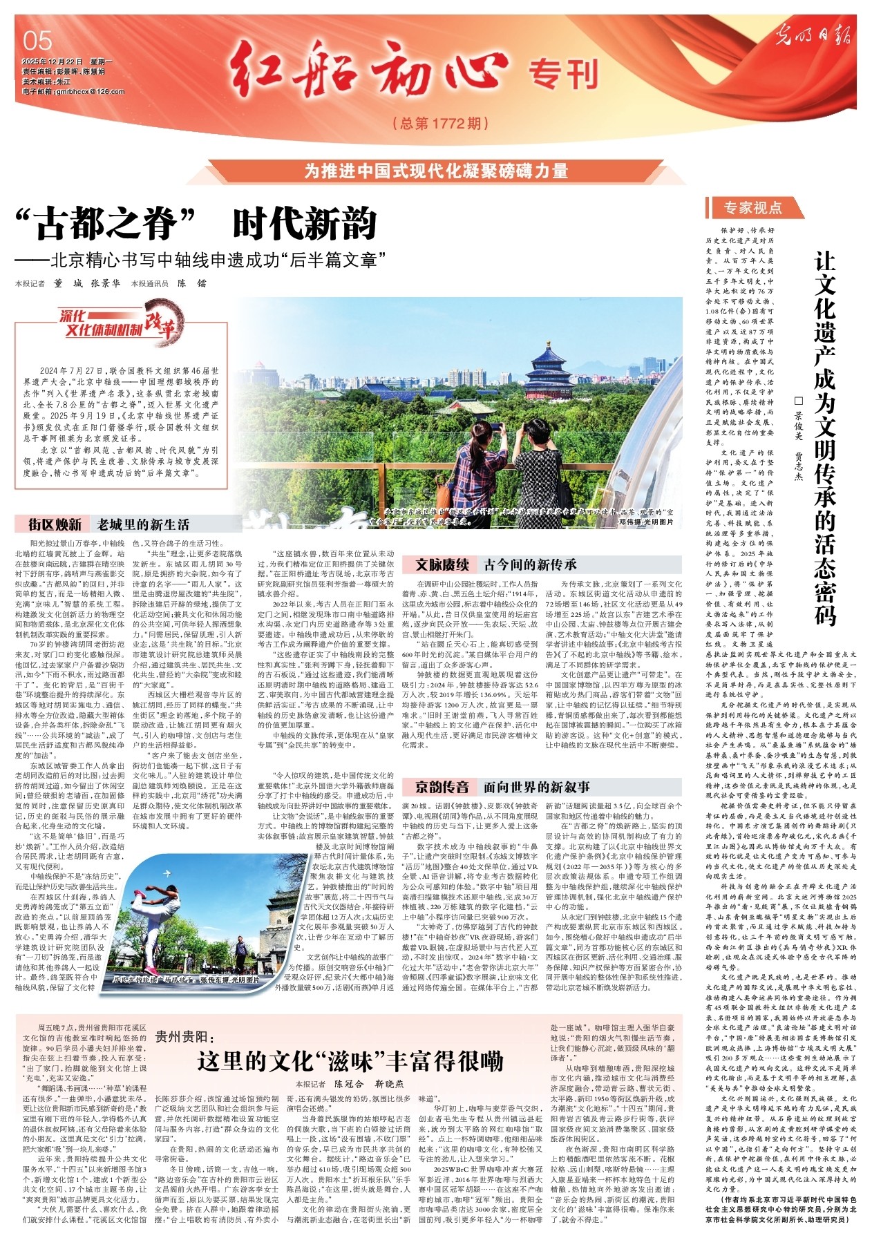 文化遗产的保护利用,要义在于坚持“保护第一”的价值立场。文化遗产的属性,决定了“保护”是基础。进入新时代,我国通过法治完善、科技赋能、系统治理等多重举措,构建起全方位的保护体系。2025年施行的修订后的《中华人民共和国文物保护法》,将“保护第一、加强管理、挖掘价值、有效利用、让文物活起来”的工作要求写入法律,从制度层面筑牢了保护红线。文物卫星遥感执法监测实现世界文化遗产和全国重点文物保护单位全覆盖,北京中轴线的保护便是一个典型代表。当然,刚性手段守护文物安全,不是简单封存,而是在真实性、完整性原则下进行系统性守护。