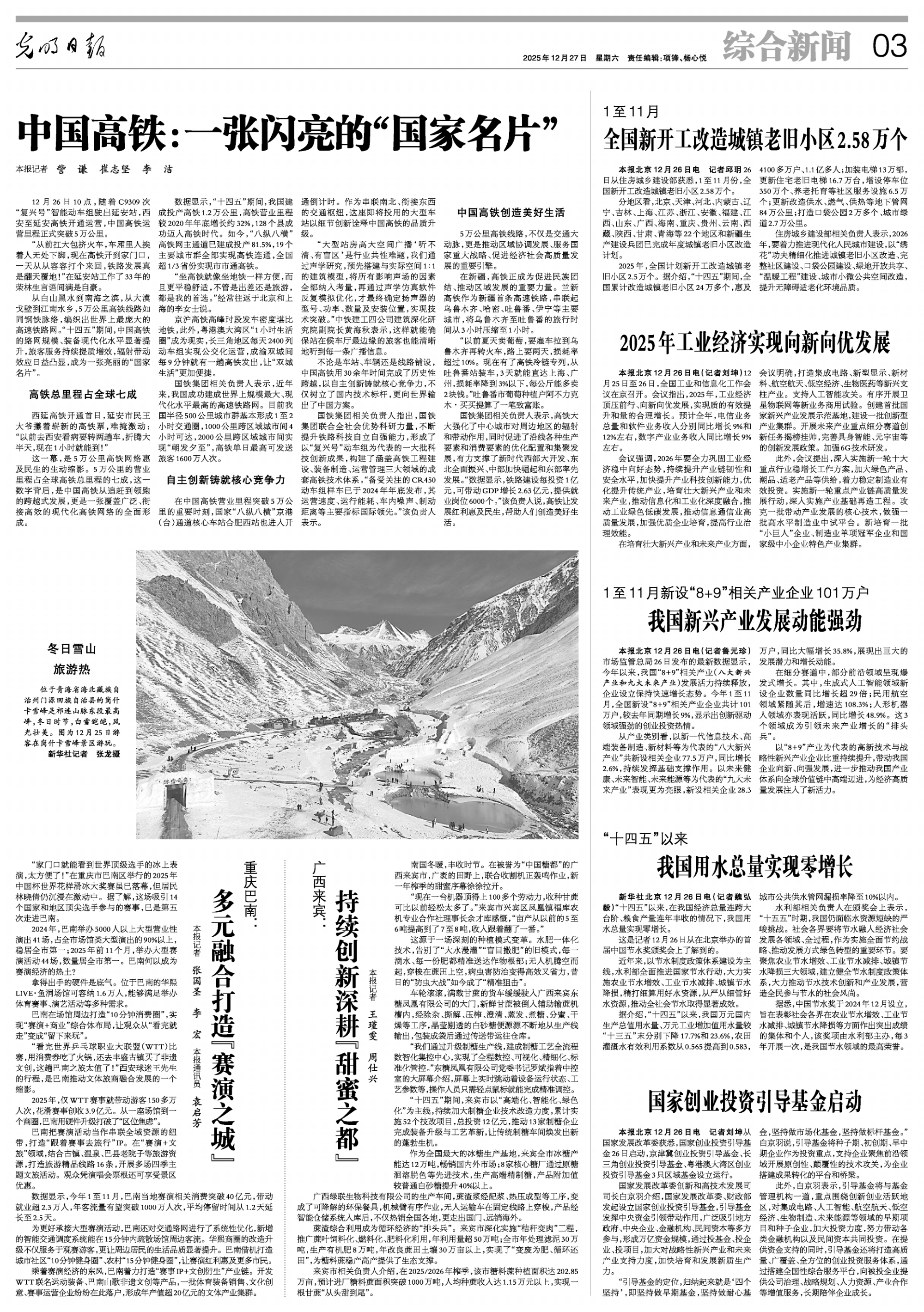 从白山黑水到南海之滨,从大漠戈壁到江南水乡,5万公里高铁线路如同钢铁脉络,编织出世界上最庞大的高速铁路网。“十四五”期间,中国高铁的路网规模、装备现代化水平显著提升,旅客服务持续提质增效,辐射带动效应日益凸显,成为一张亮丽的“国家名片”。