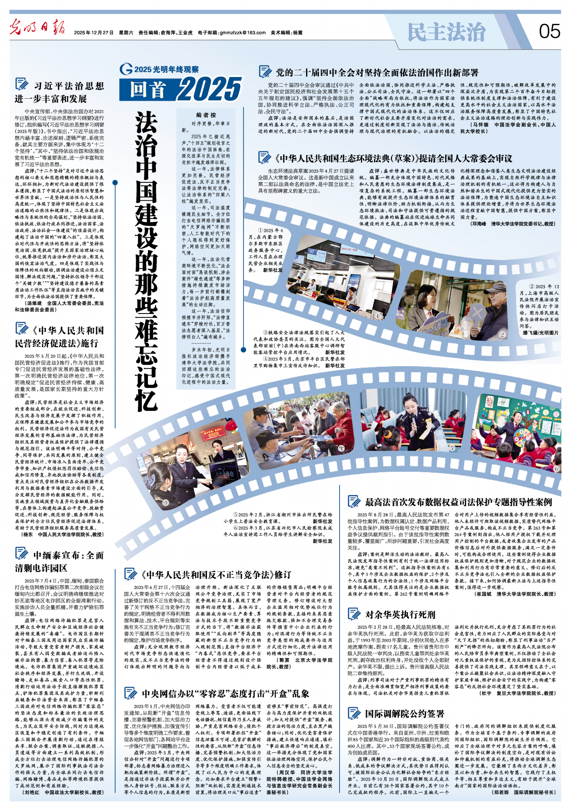 岁末年初,光明日报社政治经济部携手清华大学法学院,共同回顾这些难忘的法治印记,感受中国式现代化进程中的法治力量。