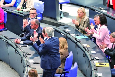 随着议会席位重组,联盟党和社民党在经历漫长而复杂的谈判后,于4月达成执政联盟协议,最终基民盟主席默茨在5月6日当选新一任德国总理。德国的选举及组阁过程本身呈现出三大特征:一是由联盟党和社民党组成的“大联盟”虽保住执政地位,但席位整体下降;二是德国选择党的崛起重塑了政治生态,德国选择党在东部部分地区甚至成为第一大党,加剧了德国社会的两极分化;三是主流政党明确拒绝与德国选择党合作,形成了在德国政界独树一帜的“防火墙”策略。