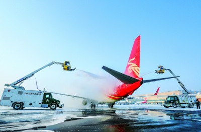 在寒冷的冬季,为飞机除冰是机务工程师的一项重要工作。如果表面附着一层冰、雪或霜,飞机的爬升力和操纵性都会受到影响,继而威胁飞行安全。