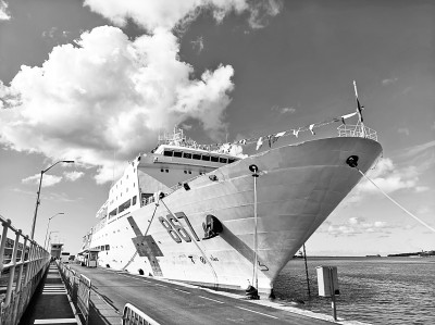 12月26日,中国海军“丝路方舟”号医院船停靠在巴巴多斯布里奇敦港。新华社发