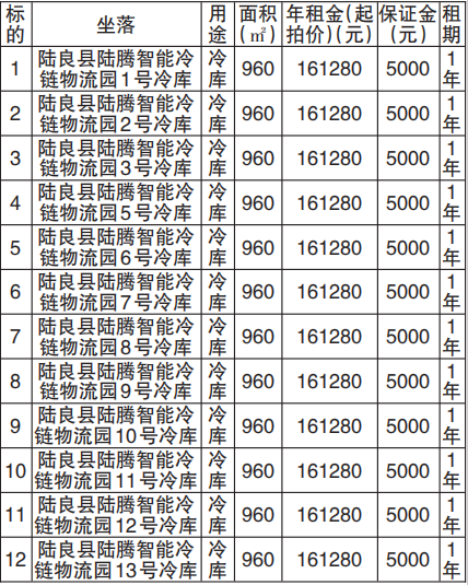 二、招租标的物展示:自公告之日起至2026年01月07日下午17:00时止。展示地点:陆良县陆腾智能冷链物流园。