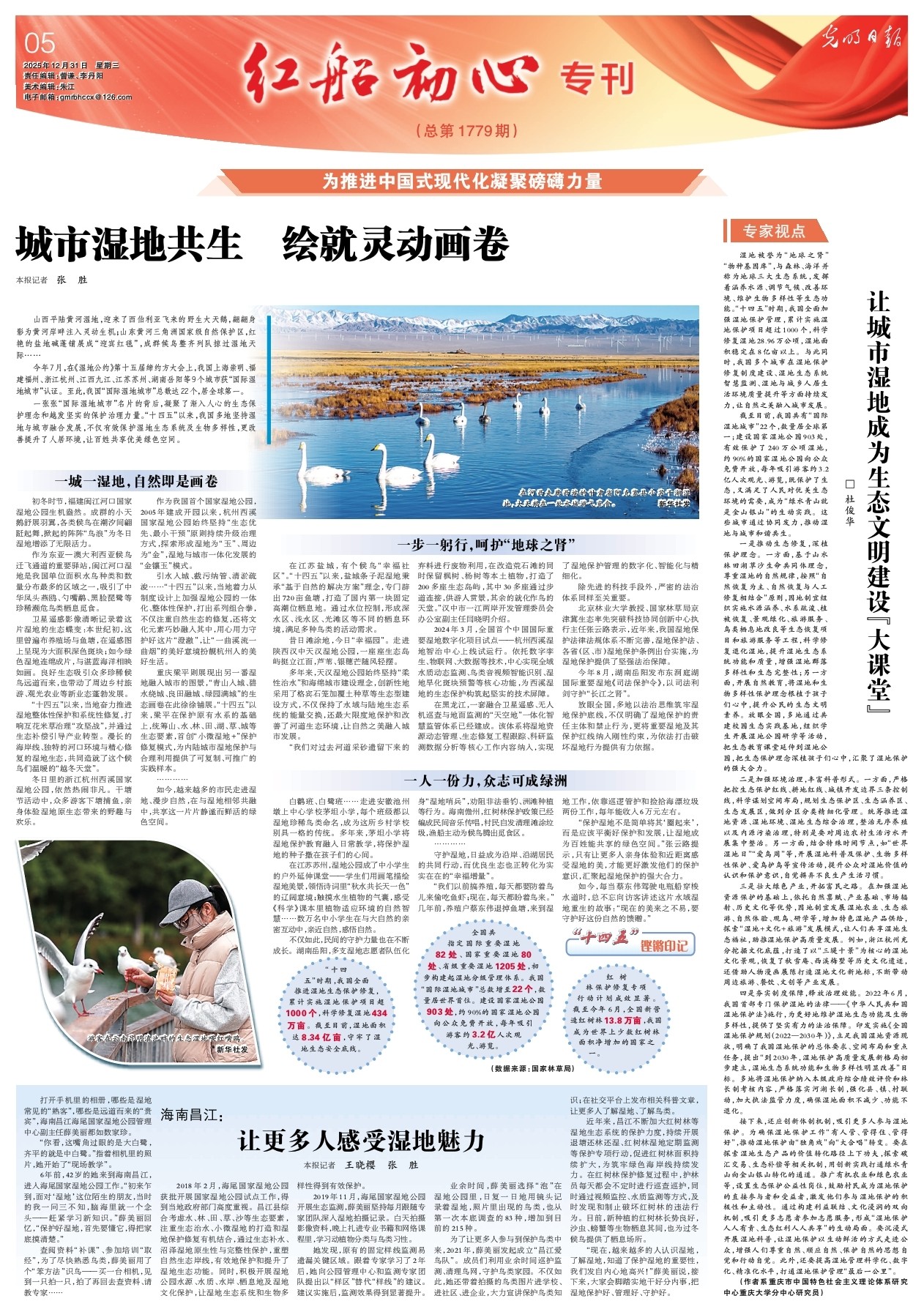 “保护湿地不是简单将其‘圈起来’,而是应该平衡好保护和发展,让湿地成为百姓能共享的绿色空间。”张云路提示,只有让更多人亲身体验和近距离感受湿地的美,才能更好激发他们的保护意识,汇聚起湿地保护的强大合力。