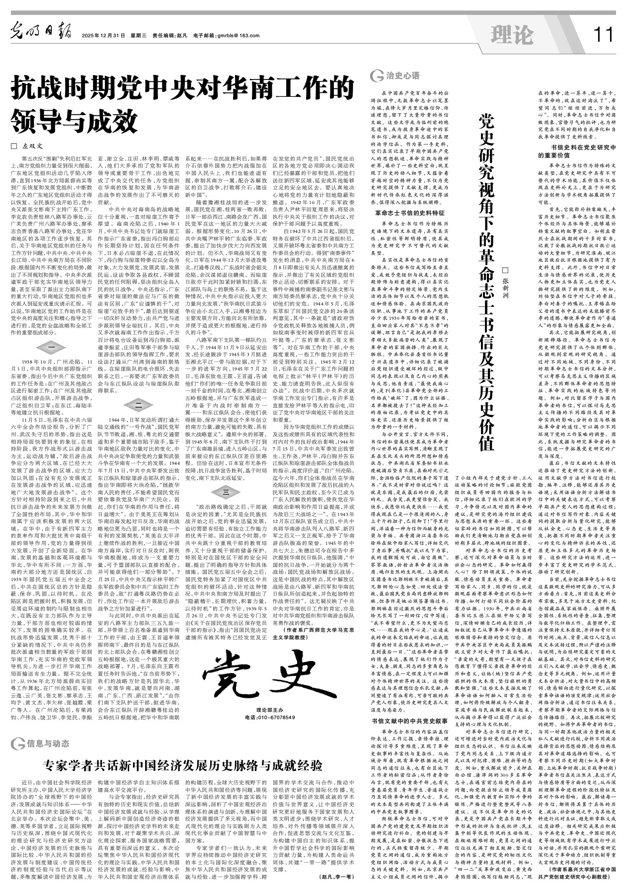 第五次反“围剿”失利后红军北上,南方党组织力量受到很大削弱,广东地区党组织活动几乎陷入停滞,直到1936年北方局派薛尚实等到广东恢复和发展党组织,中断数年之久的广东地区党组织活动才得以恢复。全民族抗战开始后,党中央又派张文彬南下主持广东工作,李克农负责桂林八路军办事处,云广英负责广州八路军办事处,廖承志负责香港八路军办事处,党在华南地区的各项工作逐步恢复。其后,关于华南地区党组织的任务与工作方针问题,中共中央、中共中央长江局、中共中央南方局在不同阶段、根据国内外不断变化的局势,做出了不同规划和指导。中央多次派遣军政干部充实华南地区领导力量,甚至采取了派出主力部队南下的重大行动,华南地区党组织也多次派人到延安或重庆请示汇报。可以说,华南地区党的工作始终是在党中央的高度关注和精心指导之下进行的,是党的全盘战略和全部工作的重要组成部分。