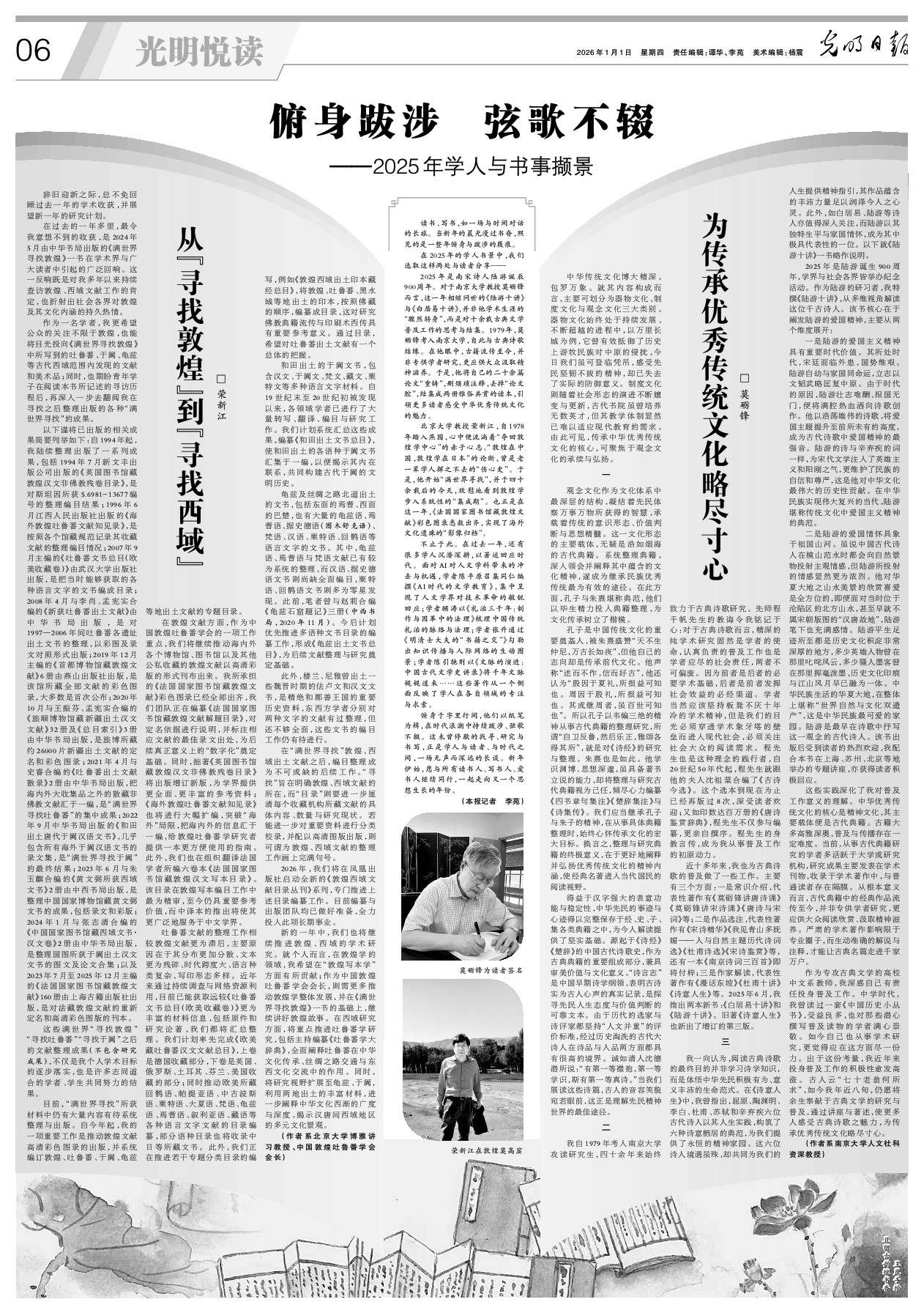 俯身于字里行间,他们以纸笔为楫,在时代浪潮中持续跋涉、弦歌不辍。这未曾停歇的找寻、研究与书写,正是学人与读者、与时代之间,一场无声而深远的长谈。新年伊始,愿与所有读书人、写书人、爱书人继续同行,一起走向又一个思想生长的年份。