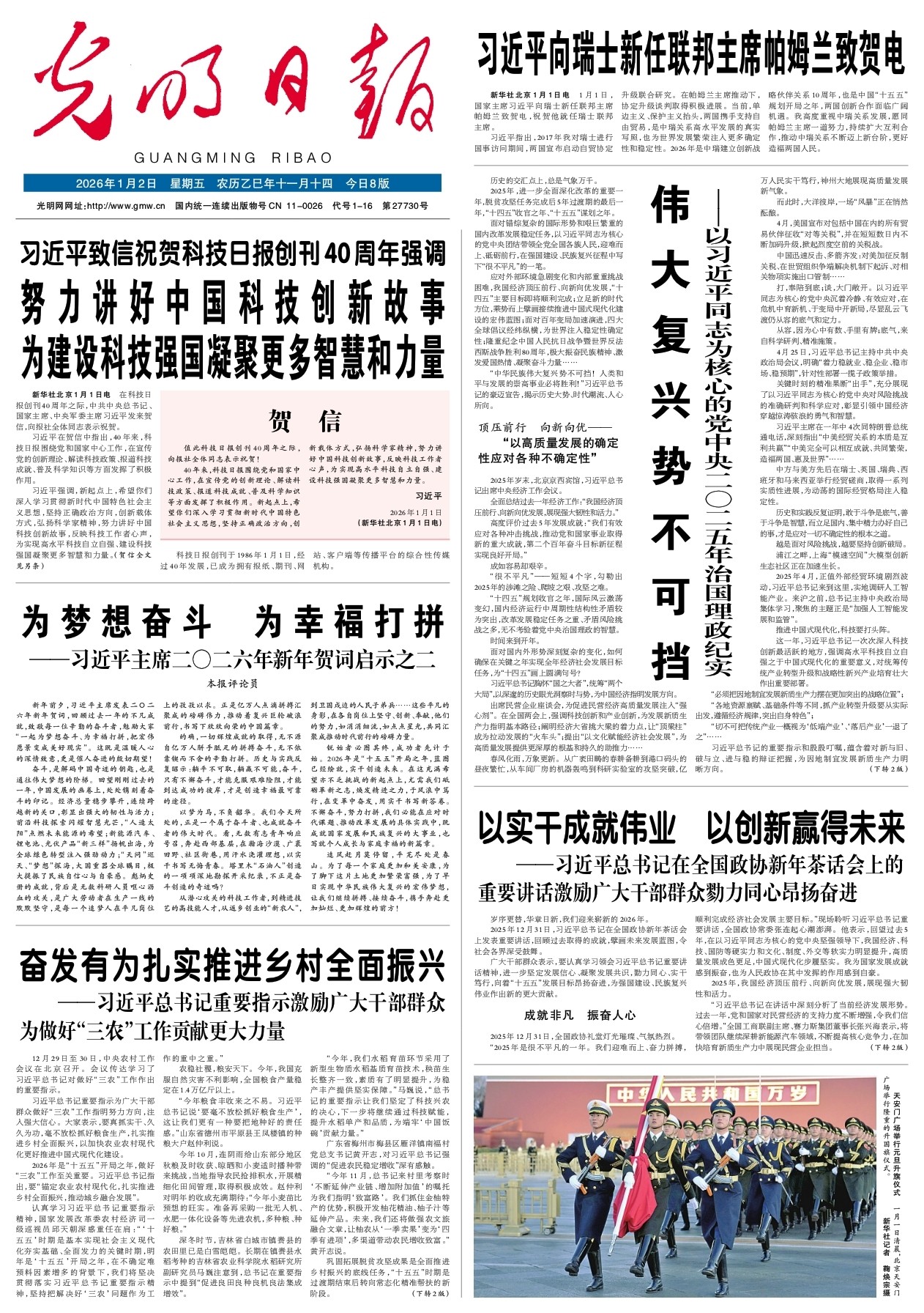 新华社北京1月1日电 在科技日报创刊40周年之际,中共中央总书记、国家主席、中央军委主席习近平发来贺信,向报社全体同志表示祝贺。