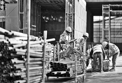 元旦假期期间,许多行业的劳动者依然坚守岗位,在工作中度过假期。图为1月2日,工人在位于上海的中建三局一公司灿瑞科技全球芯片研发中心项目工地施工。新华社记者 丁汀摄