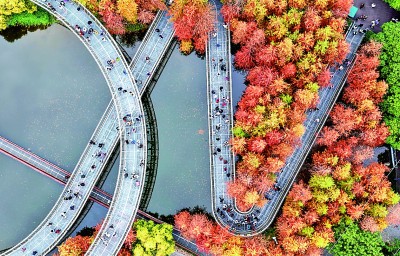 1月1日,市民在福建福州市福道梅峰山地公园内欣赏美景、拍照打卡,在如画美景中畅享假日的悠闲与惬意。王旺旺摄/光明图片