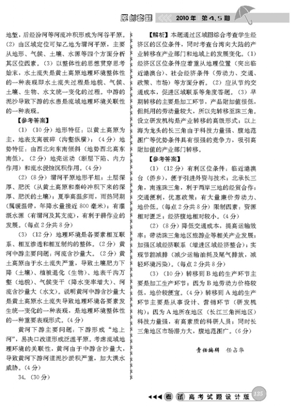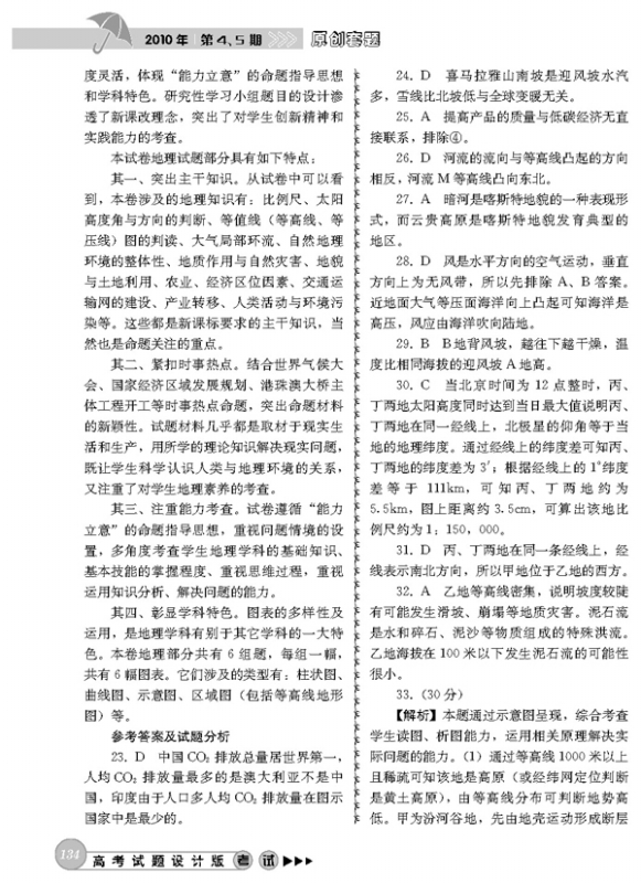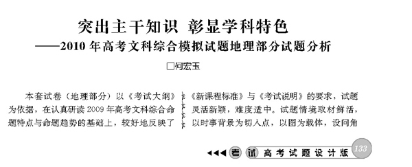 突出主干知识 彰显学科特色—— 2010年高考文科综合模拟试题地理部分试题分析