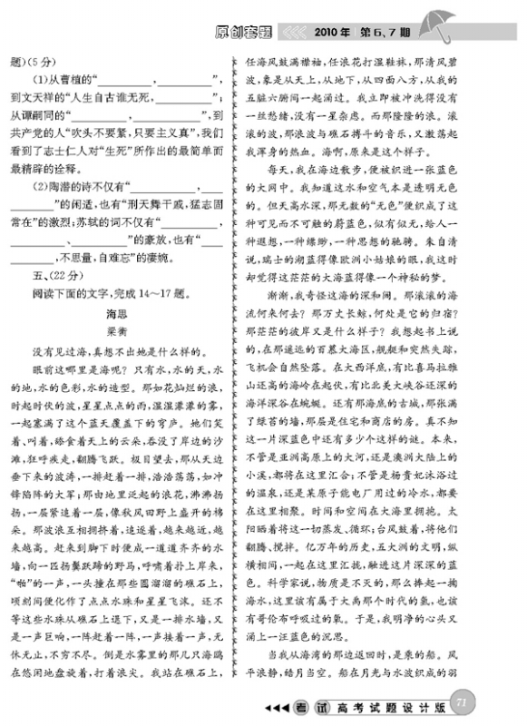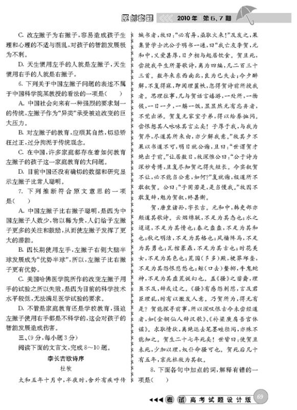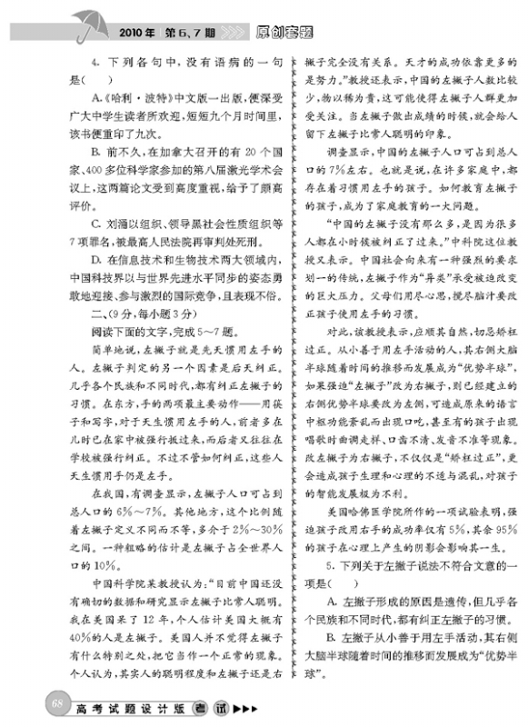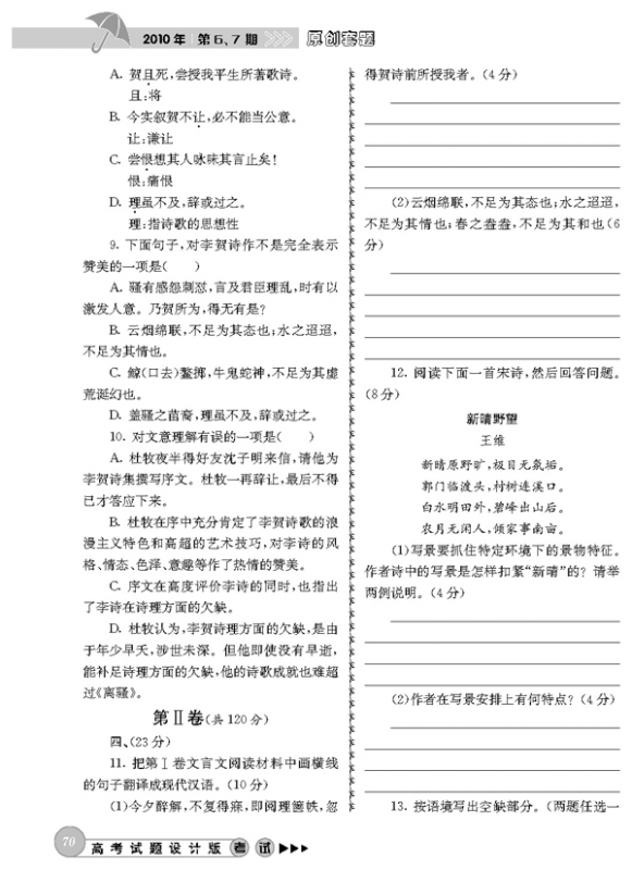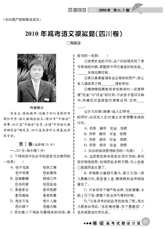 2010年高考语文模拟题(四川卷)