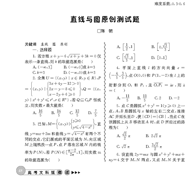 直线与圆原创测试题