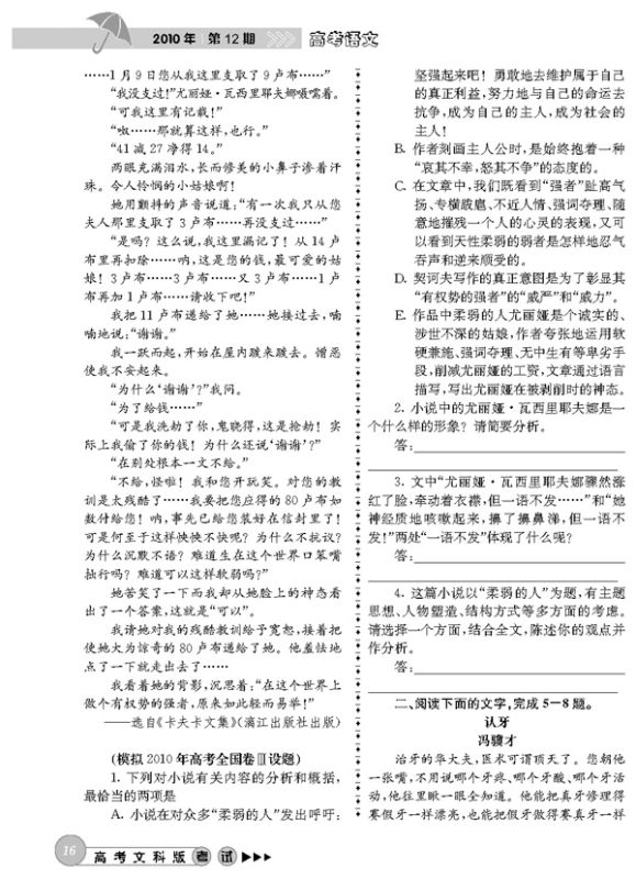 文学类文本阅读训练