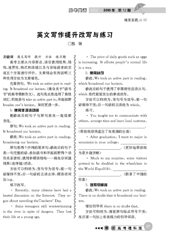 英文写作提升改写与练习