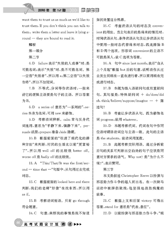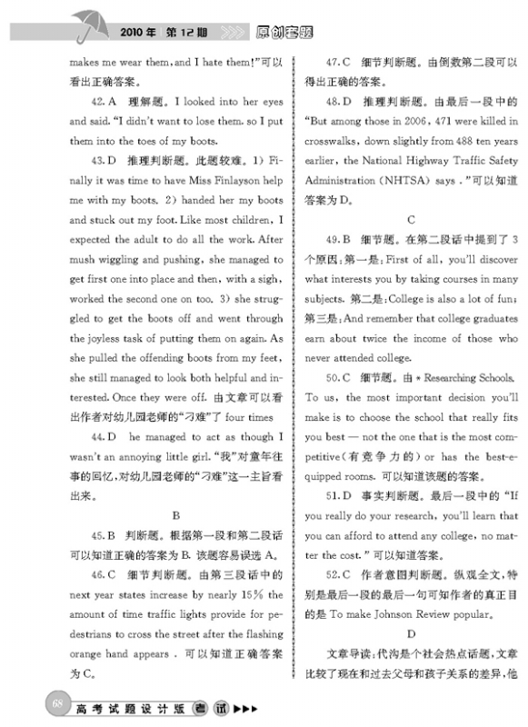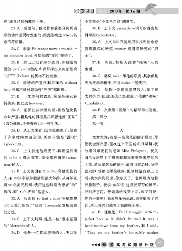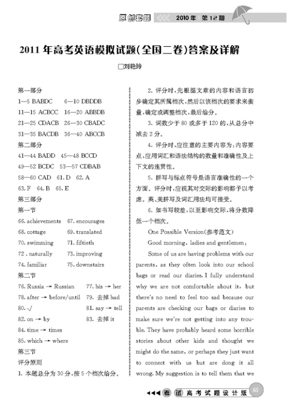 2011年高考英语模拟试题(全国二卷)答案及详解