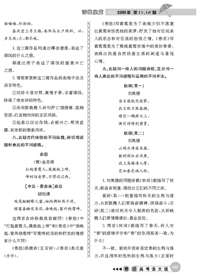 古代诗歌对比赏析