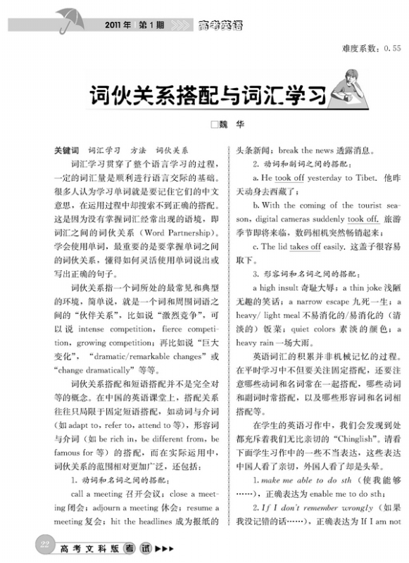 词伙关系搭配与词汇学习