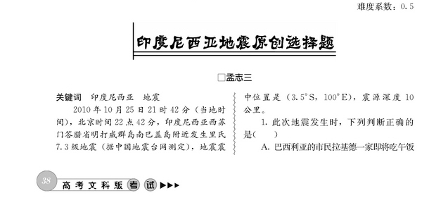 印度尼西亚地震原创选择题